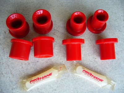 Neuer PU Buchsensatz für die Vorderachse (obere und untere Querlenker) inkl. Fett, in rot für die 1. Serie GTs.